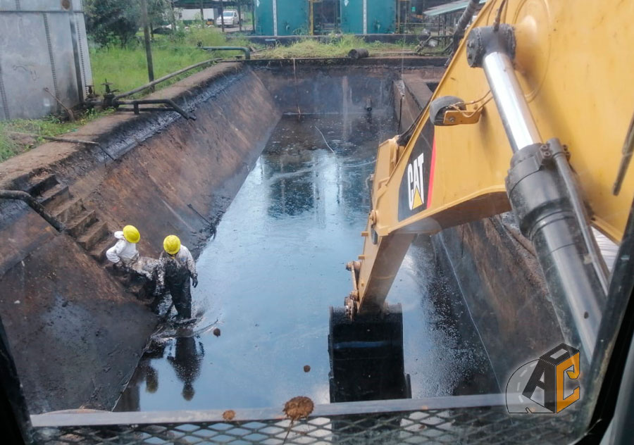 Evidencia Detalle: Desalojo y traslado de material contaminante extraído de fondos de tanques a las volquetas, limpieza de piscinas.